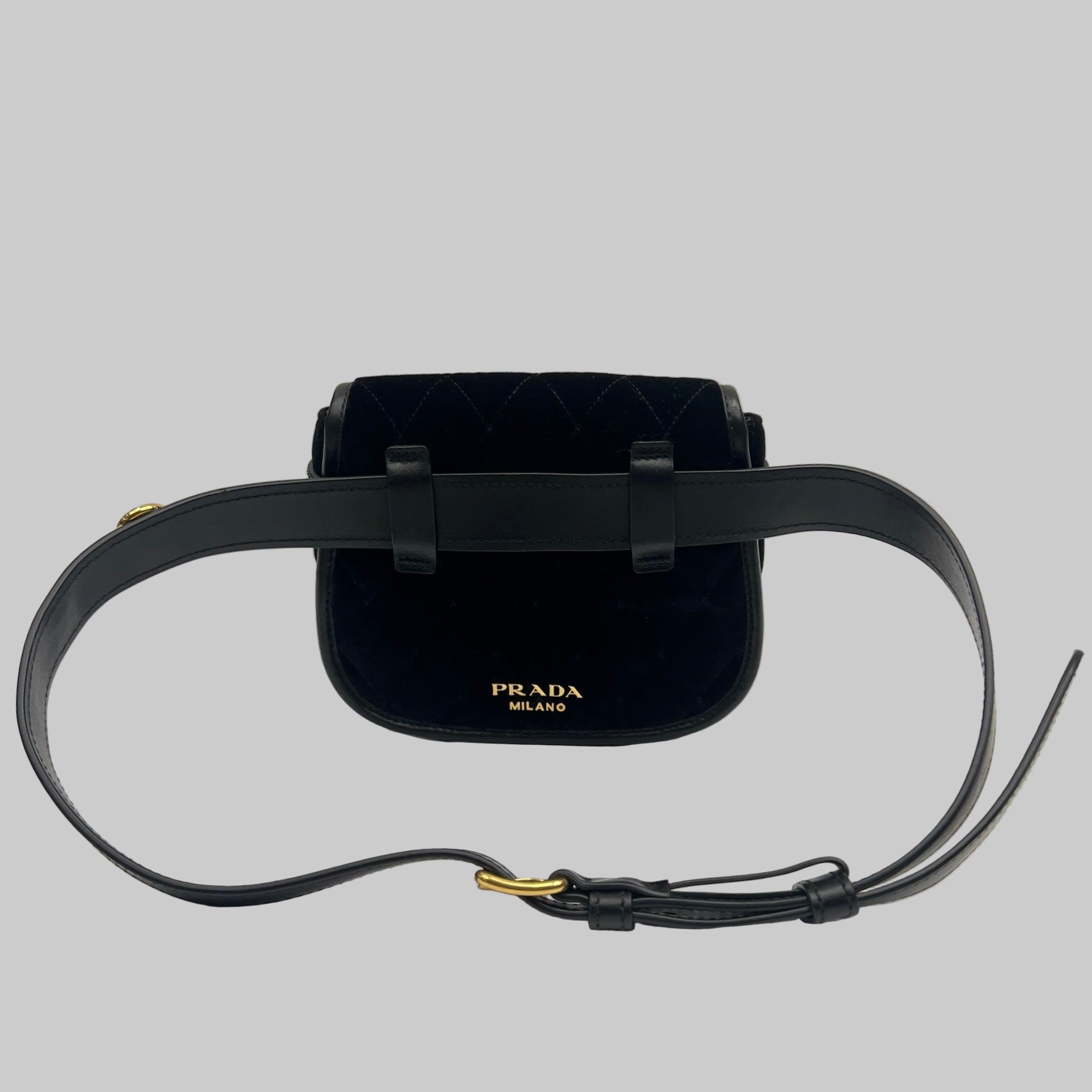 PRADA Borsa marsupio in velluto rasato matelassè nero